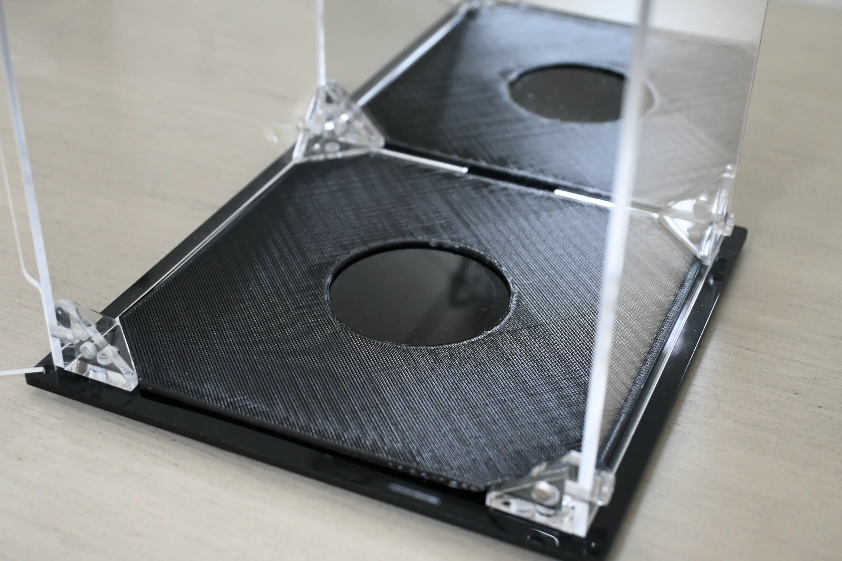 However, the one issue I had with this was aligning the figure to be in the center. To remedy this, I modeled a mat with a cutout of the amiibo base to make placement easy. It fits this display case perfectly and blends in when printed with black filament.