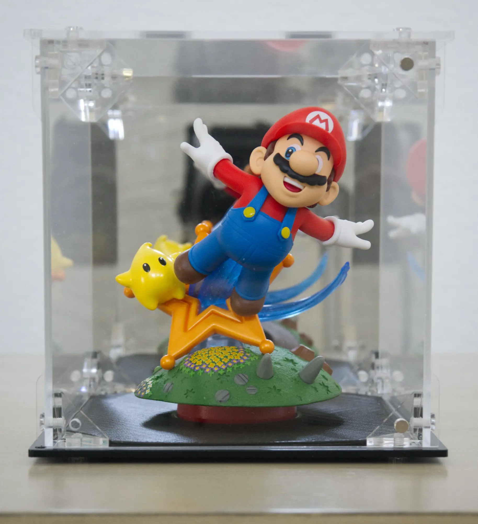 This method is pretty simple and protects the amiibo from dust. I originally tried to see if these amiibo would fit in the officially licensed (but discontinued) amiibo display box to no avail. So instead, I found this reasonably priced acrylic display case from Dezzer with good reviews. The 6”x6”x6” size was perfect for this amiibo.